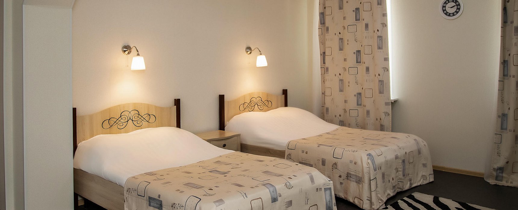 В номере: вешалка, зеркало, кровати односпальные /одна двуспальная кровать, прикроватные тумбочки, стол, стулья, шкаф, индивидуальная система обогрева, кондиционер, микроволновая печь, мини-холодильник, сейф, телевизор, телефон, чайная станция, электрочайник