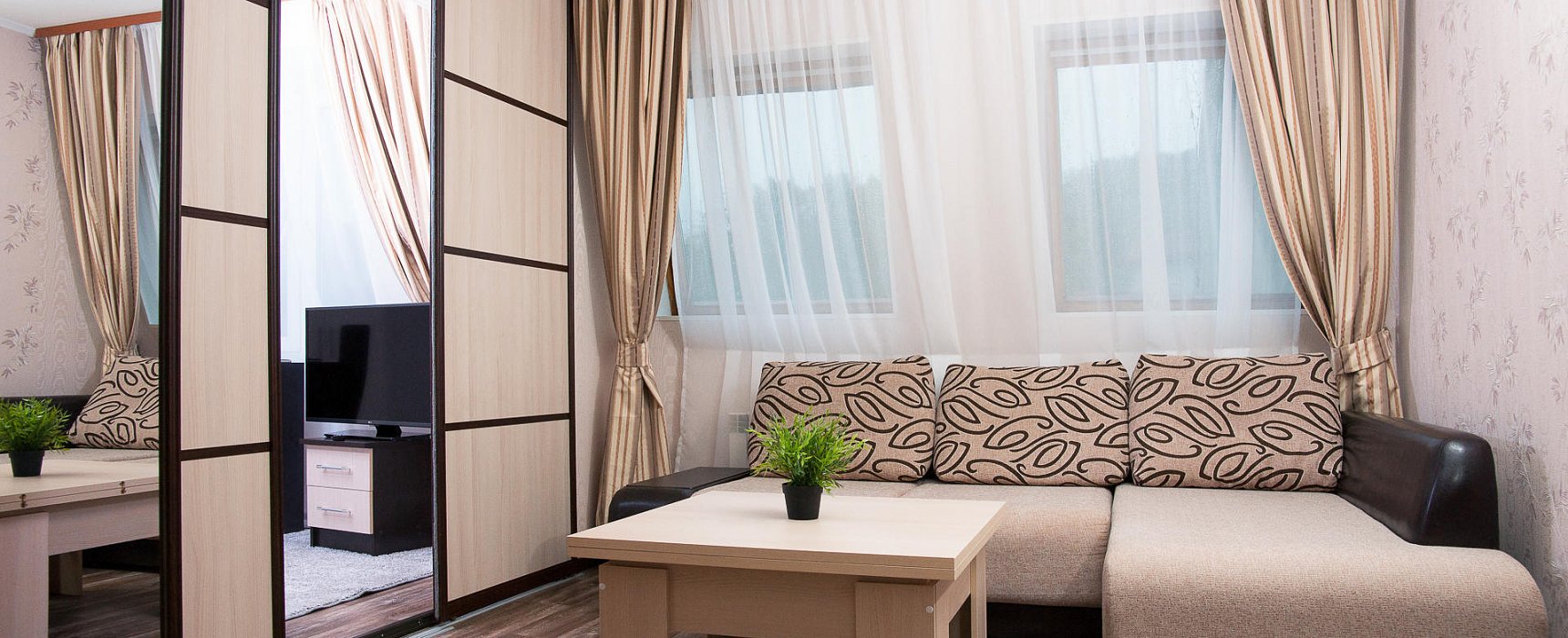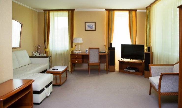 В номере: телевизор, цифровое ТВ, мягкая мебель, кухонная зона, чайник, микроволновая печь, холодильник, мини-бар